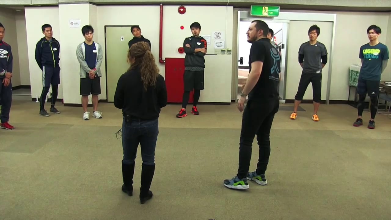 2015年4月1&2日に東京で開催されたトーマス・マイヤースの”筋膜ネットワークのトレーニング”セミナー2日目の実技部分から。身体全体が一塊に動くのではなく、分節毎に動くことを感じながら、床の上で最小限の力を使ってローリングの動きを行います。田野耕平氏のアイデアを導入した手のポジションにもご注目を!