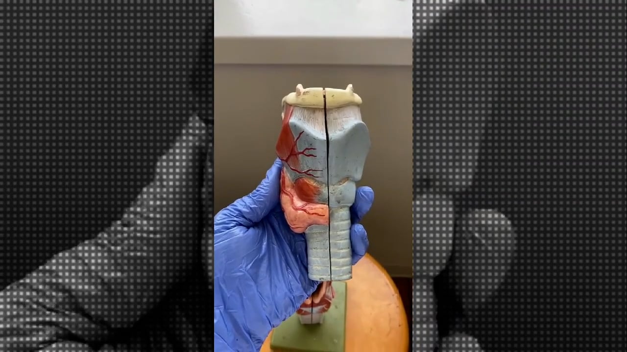 気管と食道の位置関係とか、声帯の位置とか喉頭の構造って複雑ですよね?複数の大学で解剖学を指導する専門家であるDr.キャシー・ドゥーリーが、喉頭部のプラスチックモデルを使って、複雑な喉頭の構造を丁寧に解説します。
