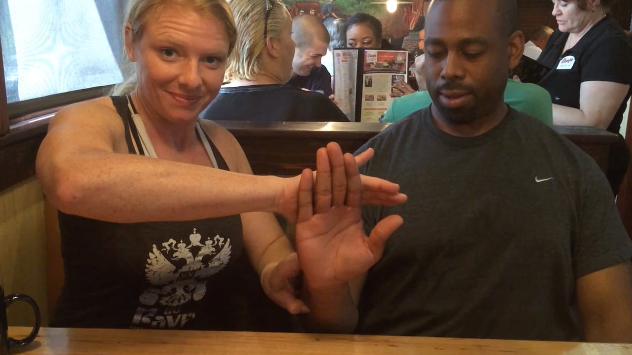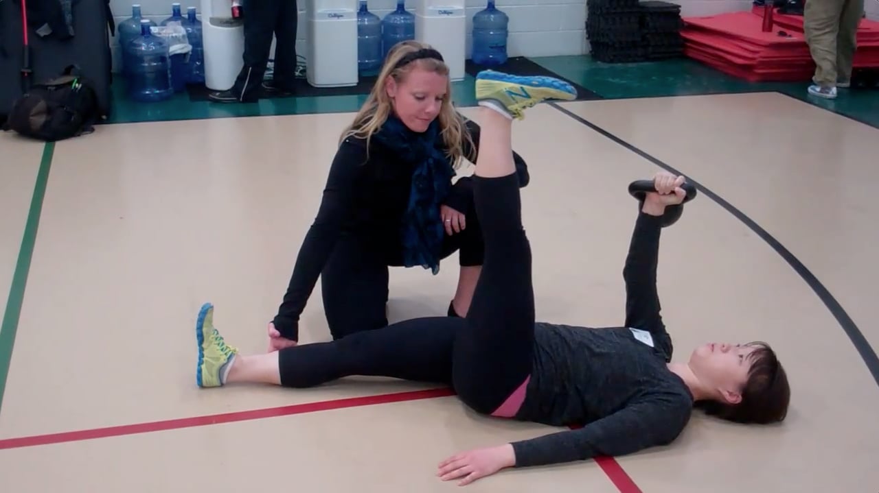 腰方形筋をリリースするためのアクティブストレッチを行う前に、効果的に行うことができるよりパッシブなリリースのテクニックをセミナー参加者から紹介されたDr.キャシーが、自身をモデルにしてそのアプローチのポイントを解説します。