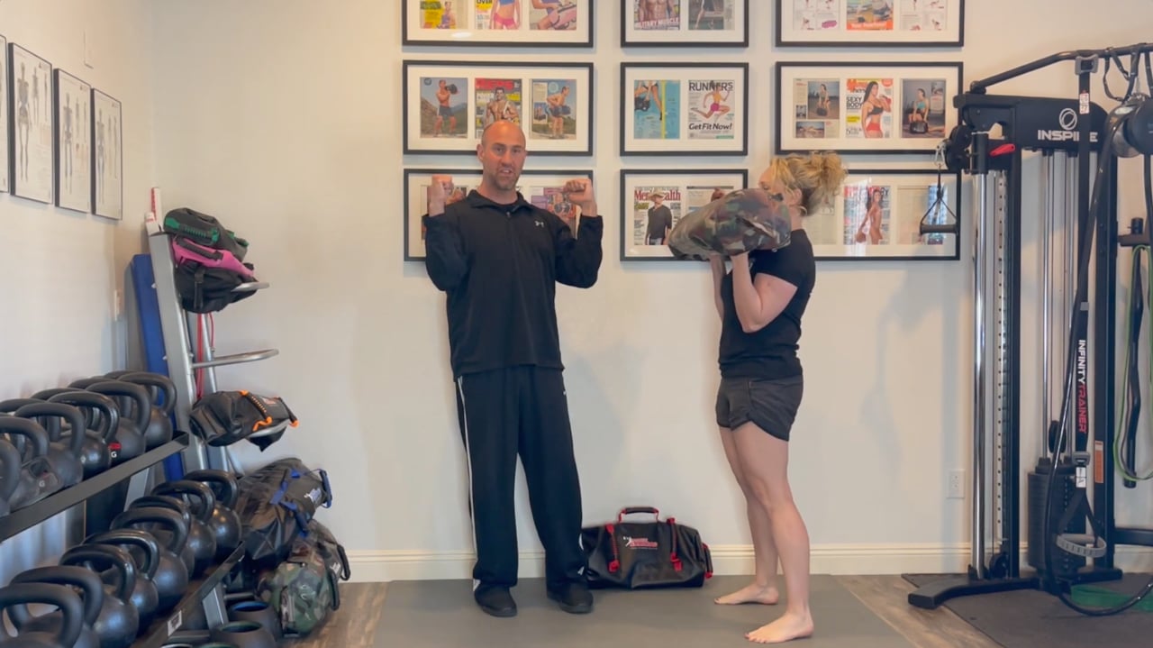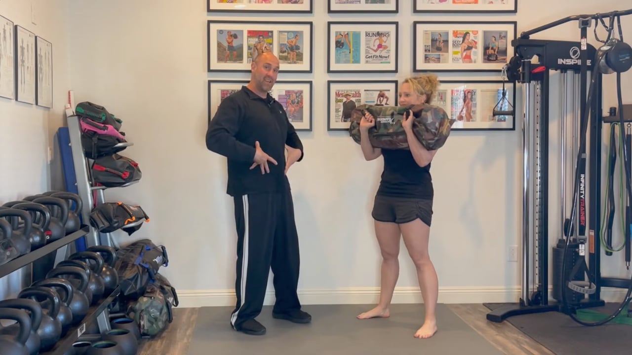アルティメイトサンドバッグを胸の前でホールドするフロントロードのポジションのスクワットでは、バーベルのスクワットと同様の重量負荷を扱うことがとても難しくなります。なぜチャレンジの度合いが上がるのか?なぜコアを反射的に動員してより効果的な動きになるのか?ジョシュが解説をします。