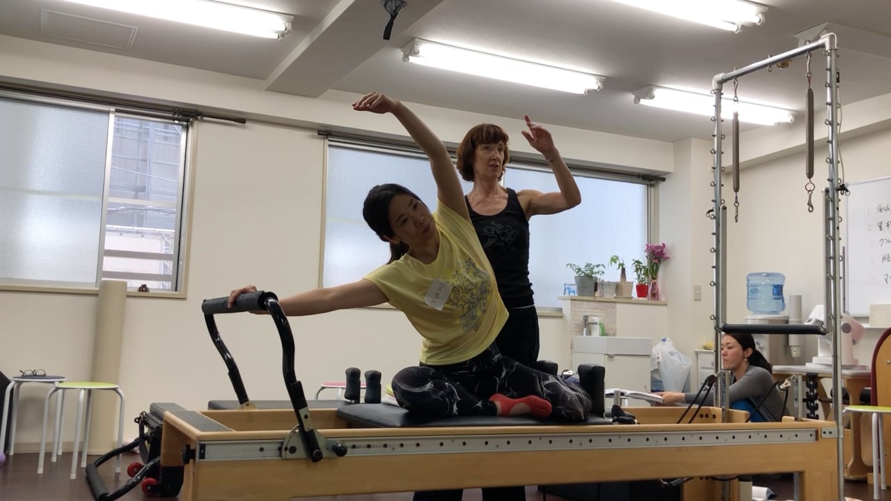 ITTピラティスのマスターインストラクターであるジーン・サリヴァンのリフォーマー2 認定コースから。ピラティスのイクイップメントの一つであるリフォーマーを使用したエクササイズである、マーメイドのセットアップと指導法、注意点のポイントをご紹介します。