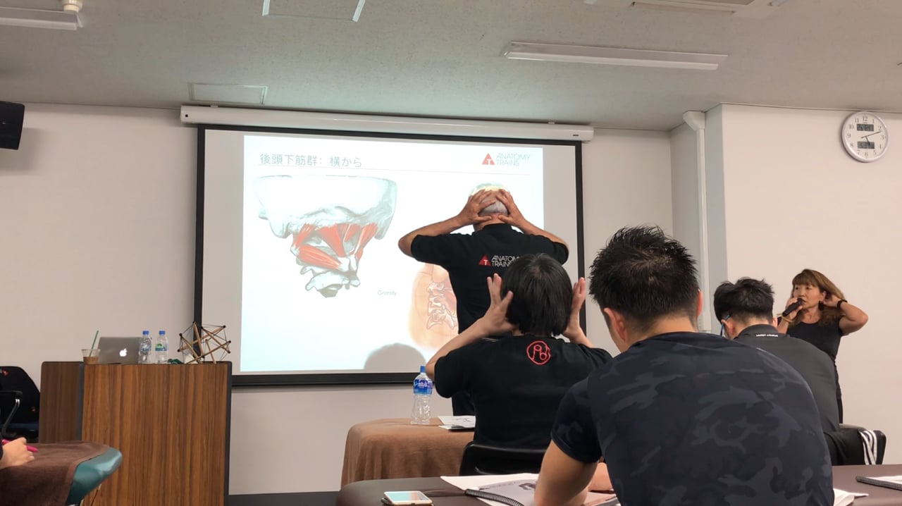 東京にて開催された、アナトミートレイン ストラクチャー&ファンクションのセミナーから。実際にパルペーションを行うことが難しい深部組織の一つである後頭下筋群を感じるために、目を動かすことに対しての反射である動眼運動反射を利用して、上部頸椎に付着する深部の筋群の活動を感じ取る方法をご紹介します。