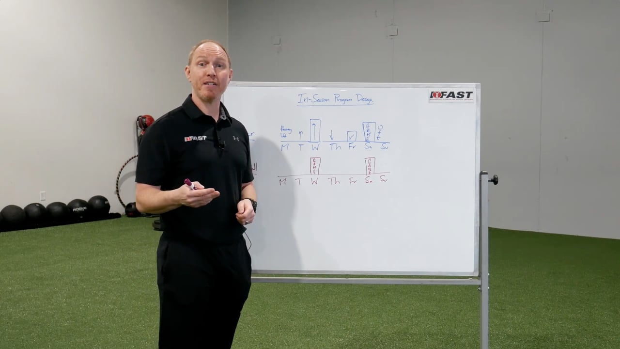 ストレングスコーチのマイク・ロバートソンが、実際に多く指導を担当してきたサッカーとバスケットの選手達のシーズン中のトレーニングプログラムを設計する際に、試合とのバランスを考慮しながら、どのような内容を提供するかの枠組みに関して実際の例を挙げながら解説をします。