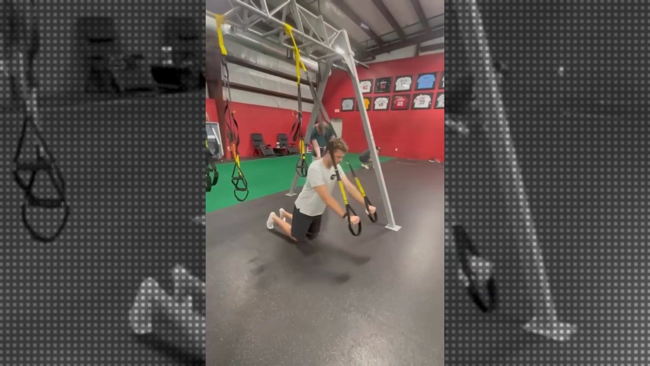 野球の投手達に必要な姿勢の維持向上のために、エリックが好んで活用しているTRXサスペンショントレーナーを用いたエクササイズを2種類紹介してくれます。シンプルな動きのように見えますが、体幹を安定させてコントロールすることが必要な効果的なエクササイズです。