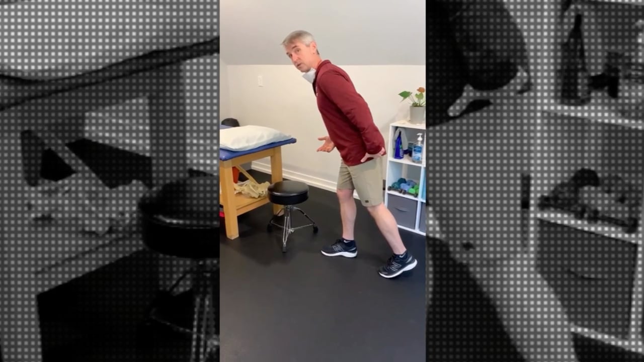 臀筋の働きを活性化するために、クライアント自身が自分で触診しながらダイナミックに筋活性を行うことができるアクティビティをマイケル・ムリンが紹介しています。