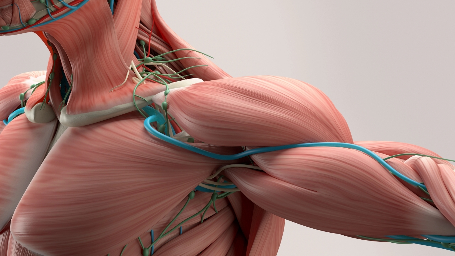 私の仕事を長くフォローしている人なら、骨運動学と関節運動学の違いを理解する必要性、そしてより重要なこととして、それらが怪我にどのように関連しているかについて私が書いているのをご覧になったことがあるでしょう。もし見逃したという場合は、記事「投球アスリートの肩のチェックとバランス」で先に進む前に、まずこの記事の概要を確認しておきましょう。 関節運動学と骨運動学の解剖学的議論は、ほとんどの場合筋肉の貢献に関連し、またこれは数多くの解剖学の教科書が優先しているものであるためにロジカルなことでもあります。しかしながら、ファシアのシステムが骨格の動きと制御のこの全体的な方程式にどのように貢献しているかについては、めったに話してきませんでした。これは主に、典型的な解剖学の教科書が単にファシアを省略しているという事実によるものです。 ファシアのシステムは、骨運動学に最も顕著な効果を発揮します:屈曲/伸展、内旋/外旋、外転/内転、そしてさらに。そのため、多関節の動きに影響を与え、システム全体で力を伝達するために非常に重要です。これは、高レベルの運動能力に非常に役立ちますが、間違ったエリアに弛まない高密度の組織がある場合は、非常に問題になる可能性があります。CSP - FLのビジネスパートナーであるShane Ryeがよく話しているように、片脚に非常にタイトなジーンズを着用し、反対側の脚はゆったりとしたアスレチックショーツを履いていることを想像してみてください。それはあなたの身体の動き方に全体的な影響を与えます。特定のエリアで信じられないほど硬くなっている場合は、それを克服するために追加の関節運動制御が必要となります。 非常に高密度で高緊張の広背筋は、肩帯全体に有意な下制の効果を与えるため、肩に多くの問題を引き起こす可能性があるという話をよくします。これは、重度に下制した肩甲骨の呈示のようなものですが、アスリートがかなりの筋肉量を持っているにもかかわらず(広背筋の筋量で示されているように)、上部僧帽筋は存在しないかのように見えることに気付くでしょう。実際には、これらはひどくオーバーストレッチされており、保護的な緊張のためにかなりトーンアップされている可能性があります。 この位置では、下部僧帽筋は、肩甲骨下制の代わりに肩甲骨の後傾をためにより強く働かなければなりません。そして、回旋腱板は、上腕骨の前方グライドを防ぐためにより強く働かなければなりません。広背筋の下部側面は胸腰筋膜と連続しているため、ファシアシステムはこの綱引きに大きく関与しているということを忘れないでください。 さらにやっかいなことに、ファシアシステムが関節運動に直接影響を与えるシナリオもあります。例えば、ファシアが関節包と連続しているエリアは沢山あります。 結局のところ、前の数段落が私たちに思い出させるのは、最高のプログラムは包括的なものであり、ファシアの貢献(良いか悪いか)を考慮しない包括的なプログラムを持つことはできないということです。長い運動連鎖、全身の動きはファシアのフィットネスには素晴らしいものですが、関節特異的な関節運動コントロールを持たない人には問題があるかもしれません。このパターンは、複数のファシアのラインを刺激するのには素晴らしいかもしれませんが、もしあなたの回旋腱板(左)が役割を果たしておらず、オーバーヘッドでの痛みをなくすことができない場合には、ひどく悪いものです。