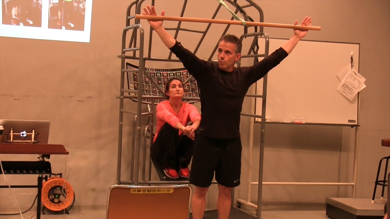 2014年10月8日&9日、東京で開催されたグレイインスティチュートFSTT 機能的軟部組織の変容 上肢コースより。木製のポールとラバーバンド、トゥルーストレッチステーションを使用した肩周辺組織のモビリゼーションのテクニックをご紹介します。