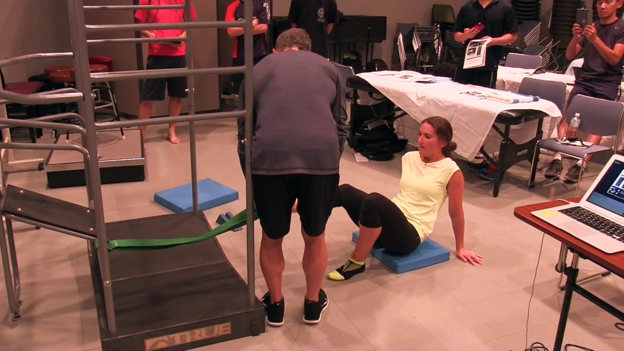 2014年10月8日&9日、東京で開催されたグレイインスティチュートFSTT 機能的軟部組織の変容 下肢コースより。トゥルーストレッチステーションという環境と、ゴムのバンドを使用して、圧縮された足関節のスペースを取り戻すためのトラクションと動作を使ったテクニックをご紹介します。