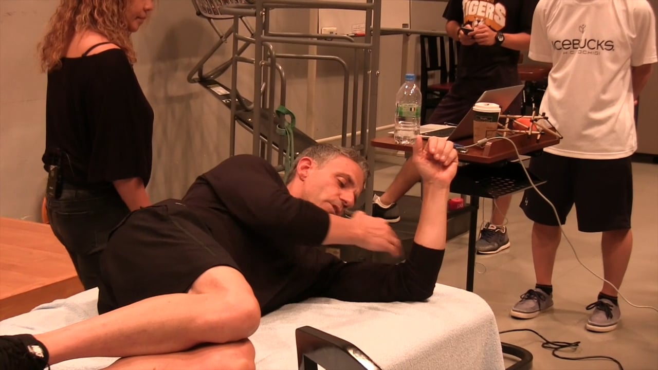2014年10月8日&9日、東京で開催中のグレイインスティチュートFSTT 機能的軟部組織の変容 上肢コースより。肘や前腕のエリアに、ゴム製のコンプレッションバンドを巻いて、組織を動かすことによる、組織への水和作用に関して、レニーが実技と共に、その効果を解説します。
