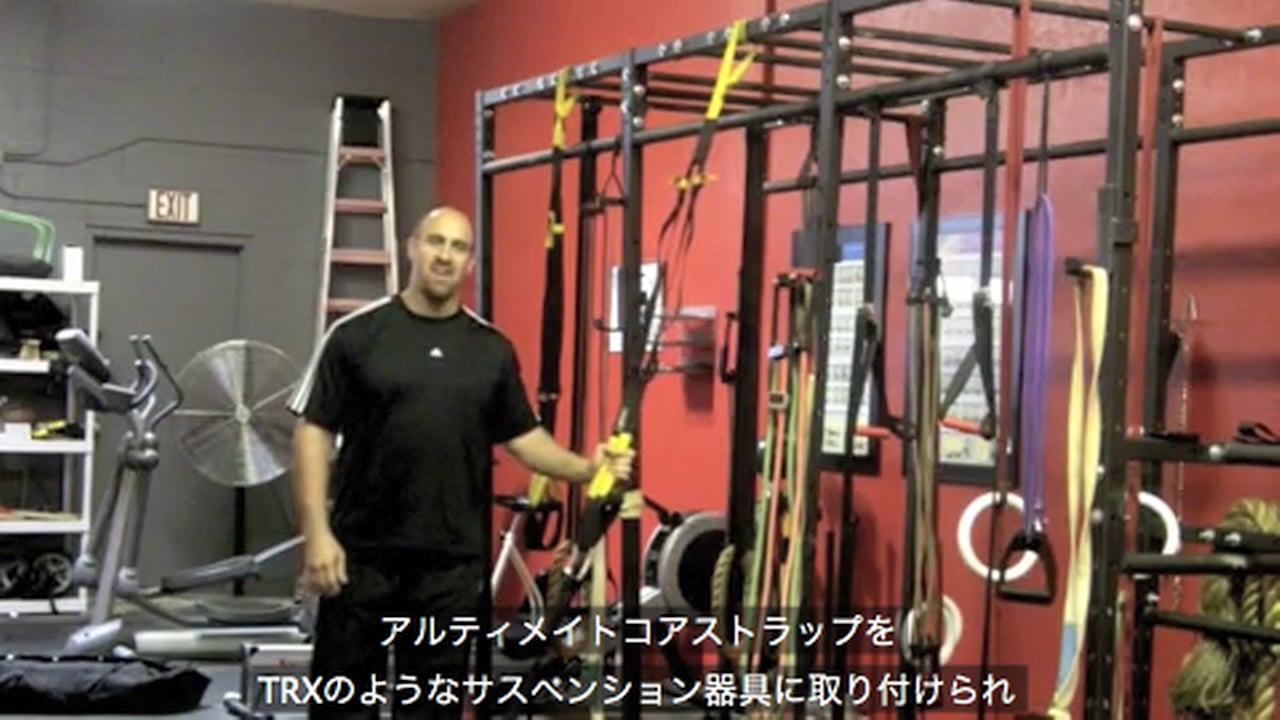 アルティメイトサンドバッグを、TRXサスペンショントレーナーや、ゴムバンド、ケーブルシステム等に接続するアルティメイトコアストラップを使用したエクササイズの数々を、開発者であるジョシュ自身が紹介します。USBをTRXや、ゴムバンド、ケーブルコラムに取り付けることで、それぞれの器具の特徴を活かし、身体に対する新たなチャレンジを与えることが可能です。