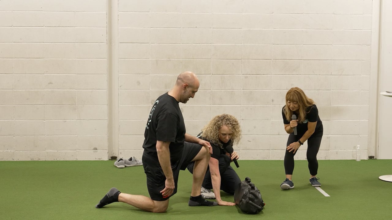 アルティメイトサンドバッグを使用したプレスアウトスクワットをご存知ですか?膝に痛みがあったりスクワットパターンが上手く行えない人にも心地良くスクワットのパターンを指導することができる素晴らしいエクササイズです。動きの意図とタイミングを理解することの重要性についてジェシカが解説します。