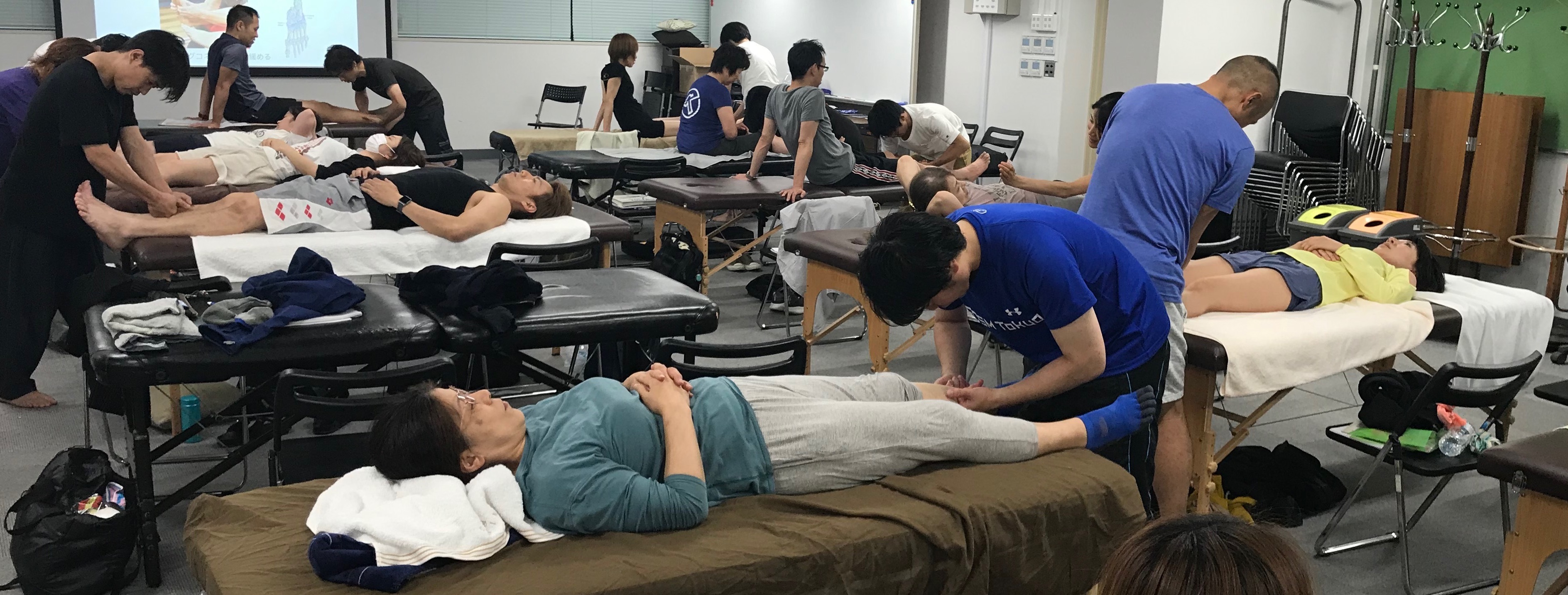 ロルフィングとATSI認定資格を持つ5名のアシスタントがサポート。最新の知見・情報とトムの経験を含んだ講義とたくさんの実技を行う、3日間でした!