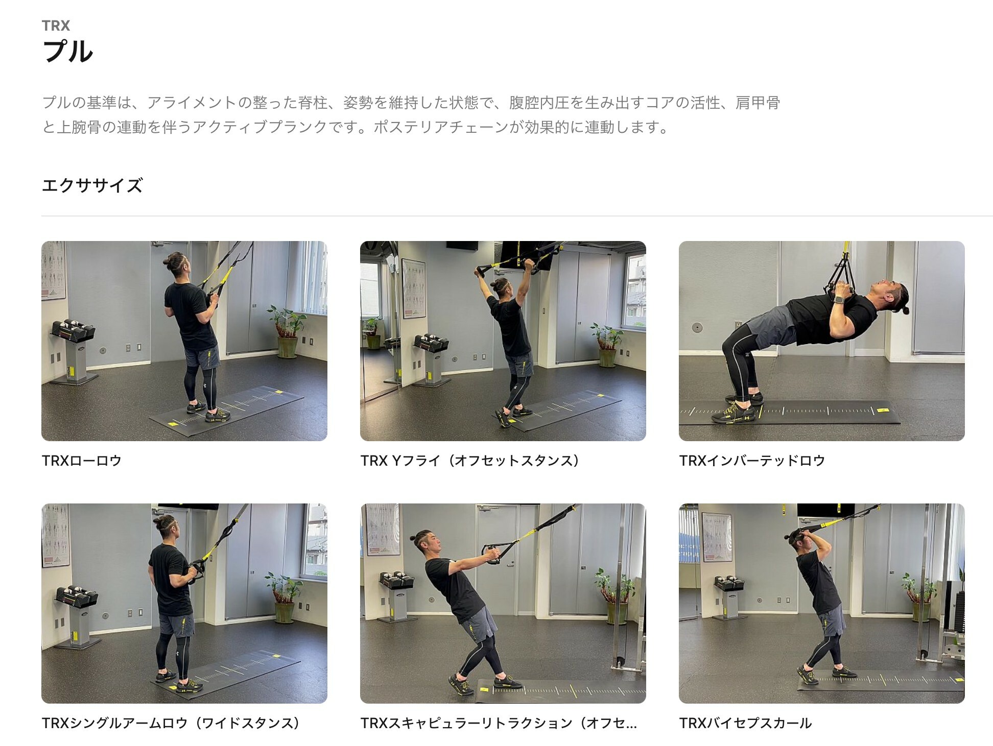 このTRXライブラリがあれば、エクササイズのポイントを再確認できるのみでなく、ビデオや写真で復習して、更にプログラムを作成することも自由自在にできてしまいます。