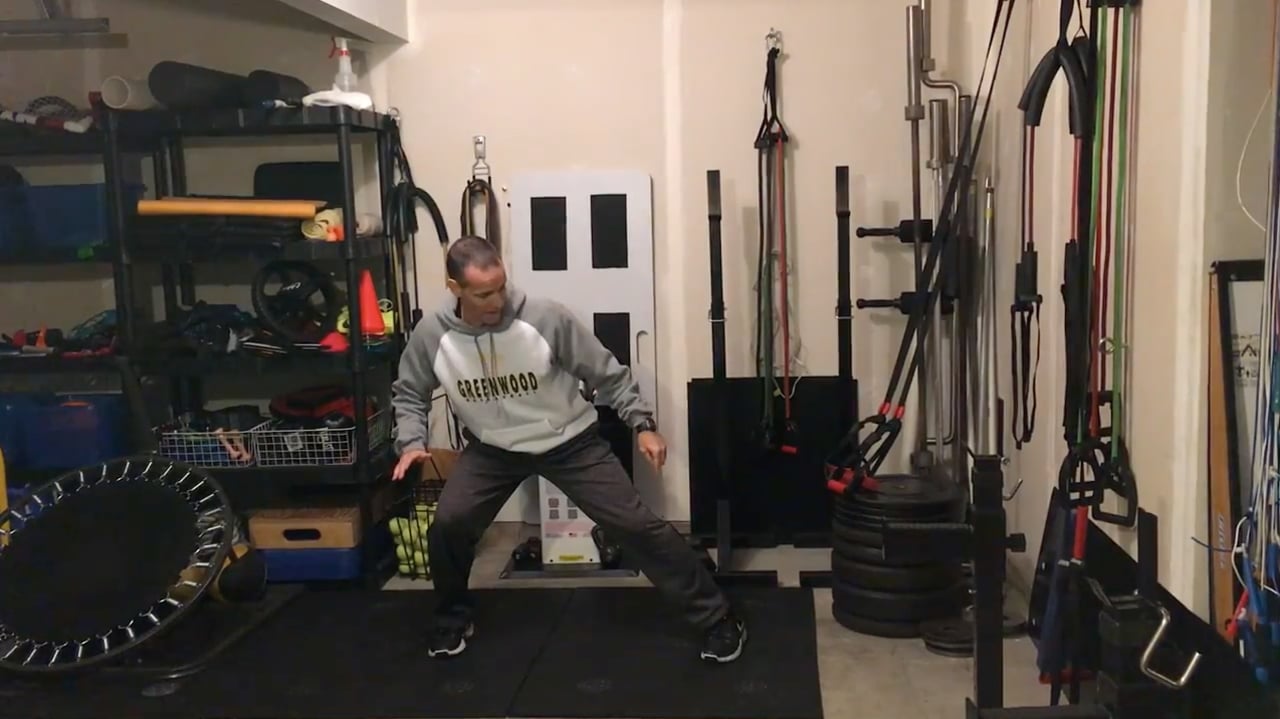 エクササイズ#1 メディスンボールサイドスロープログレッション: A. 立位でのサイドスロー:アスリートはアスレティックスタンスでボールを胸の高さで持ち、肘を外に開き、壁に対して横向きに立ちます。(ボールの機み具合によりますが、大体10-12フィート(3-3.6m)離れて立ちます) 後ろ側の脚を使って股関節を前方へ押し出し、前側の脚を壁に向って小さくステップします。 爆発的にボールを壁に向って押し出しますが、後ろの肘を上方に保持することで肩に傷害を起こさないようにします。 このエクササイズの焦点は、投げること自体ではなく、側方シャッフルのように後ろ脚を前方に押し出すために最良なスタンスを理解することにあります。 アスリートのスタンスが狭すぎる、あるいは、高く立ちすぎてしまうと、パワーの産出に制限がかかってしまうでしょう。 このエクササイズは両サイド行う必要があります。 B. 正方向シャッフルサイドスロー:アスリートは壁からさらに約6-8フィート( 1.8m ~2.4m )離れます。このエクササイズは立位サイドスローと同じことを行いますが、強調することは側方へのスピードに変わります: アスリートは良いスタンスを保ちながら、1、2回シャッフルし、そして、後ろ足を前方へ押し出し、そのスピードをスロー(投げる動作)に伝達します。 アスリートは後ろ足を使って下方、後方に押すことで、スロー(投げる動作)により早いスピードを産み出さなければなりません。 アスリートが良いアスレチックスタンス(基盤)をもっていなければ、効果を得るために十分な力を産み出せないでしょう。 C. 逆方向シャッフルサイドスロー:同様のエクササイズですが、ここではアスリートは壁から離れるように逆方向にシャッフルします。壁から6-8フィート( 1.8m ~2.4m )だけ離れた場所からスタートしてください。 アスリートは壁から離れるように1-2回アグレッシブにシャッフルし、ボールを投げるために強く足を踏み込みます。 これはアスレティックスタンスと踏み込み脚の角度の重要性を強調させるために、すべてのエクササイズのなかで最も重要になります。 止まろうとする時に、踏み込み脚である後ろ脚の幅が狭すぎると、投げる力は弱くなるでしょう。 アスリートは投げる時も、まだ前方へ動いていたいのです。それぞれのサイドで3-5回を2-4セット行わせます。このエクササイズは高強度で行わなければなりません。ボールの重さ、アスリートの経験値、スキルレベルによって、セット数と回数を決定します。 これはサイドメディスンボールスローの静止状態からのバリエーションです。正方向・逆方向シャッフルスローはどちらも、アスリートはこのポジションに戻ってくることになります。逆方向スローは減速角度を教えるためにとても重要になります。踏み込みが上手に行われなければ、スローに現れます。素晴らしいフィードバックドリルです。 エクササイズ#2 片腕片脚チューブロウ 加速・減速(アスレティックスピードにおいて、最も素早いアスリートがそれ以外のアスリートよりも優れて行えるもの)の両方にフォーカスしているため、これはとても優れたスピードエクササイズです a. 最初のポジションは、アスリートに片脚をスクワット/曲げた状態にさせ、チューブが引っ張る強さに抵抗させます。減速に必要な筋肉群が働きます。 b. それからアスリートは素早く立ち上がり、膝を上方に引き上げながらチューブを引っ張ります。これは加速する筋肉群を動員します。 c. このエクササイズのプラスの利点は、バランスと安定性のトレーニングになるということです。 私たちは通常それぞれのサイドで5-8回を2-4セット行わせます。ゆっくりとスクワット/膝を曲げさせ、爆発的に伸ばします。 エクササイズ#3 リアクティブシャッフルとクロスオーバー この写真では、アスリートはコーチが示す方向へ素早く反応し、シャッフルかクロスオーバーをする準備をしています。これはアスリートにスキルを向上させるためとコーチが優れたフィードバックを利用するための実際のセッティングです。 a. アスリートは体重をかけたアスレティックスタンスに入り、シャッフル、または、クロスオーバーの準備をして(コーチがすでにどちらにするか決定しています)、コーチの指示したポイントに反応します。 b. このタイプのエクササイズは、アスリートが無作為に反応しなければならないため、アスレティックスピードを向上させるためには優れています。アスリートは彼、または彼女の生まれ持った能力を使うことになります。間違えても、コーチが簡単に修正し、回数を重ねることでアスリートによりよいパターンを再獲得させることができます。 通常は3-5回を2-3セット行わせます。アスリートができる限り素早く反応してコーンまでいき、もとの位置に帰ってくるまでを1回とします。スピードを追求しているため、しっかりと休息させ、完全に疲弊させないようにします。 エクササイズ#4 