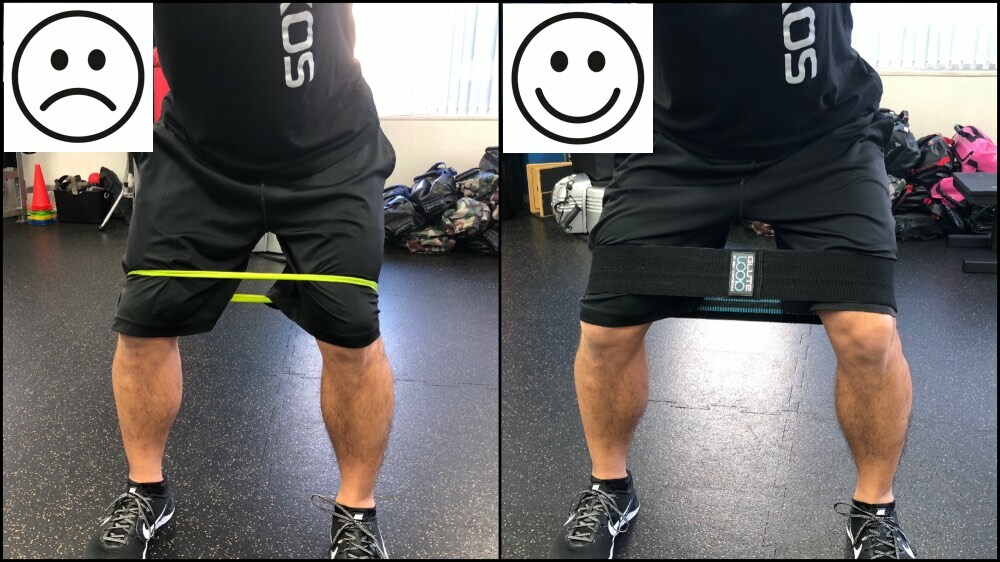 立位、ヒップヒンジ、仰臥位、座位、四つ這い、側臥位などのポジションで使用することにより股関節外転の前額面、あるいは股関節外旋における水平面へのレジスタンスを提供することができます。