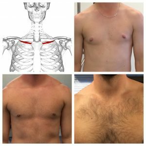 さらに良くないのは、鎖骨下筋が第一肋骨を挙上させる過度に緊張した斜角筋と共に働くことが多く、上下から挟まれて潰されてしまうということ。これらの骨の間には、重要な神経と血管の構造が通っていることも忘れてはなりません。胸郭出口症候群の診断が考慮される場合には、鎖骨下筋は無視してはならない解剖学的構造なのです。